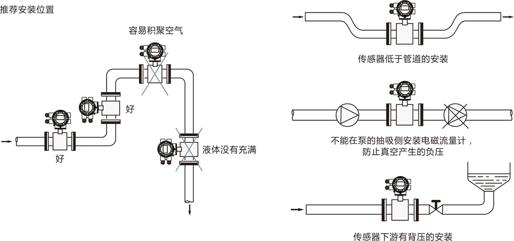 2. 如安裝位置不易更換,可在流量計上游安裝集氣器,定期排氣。