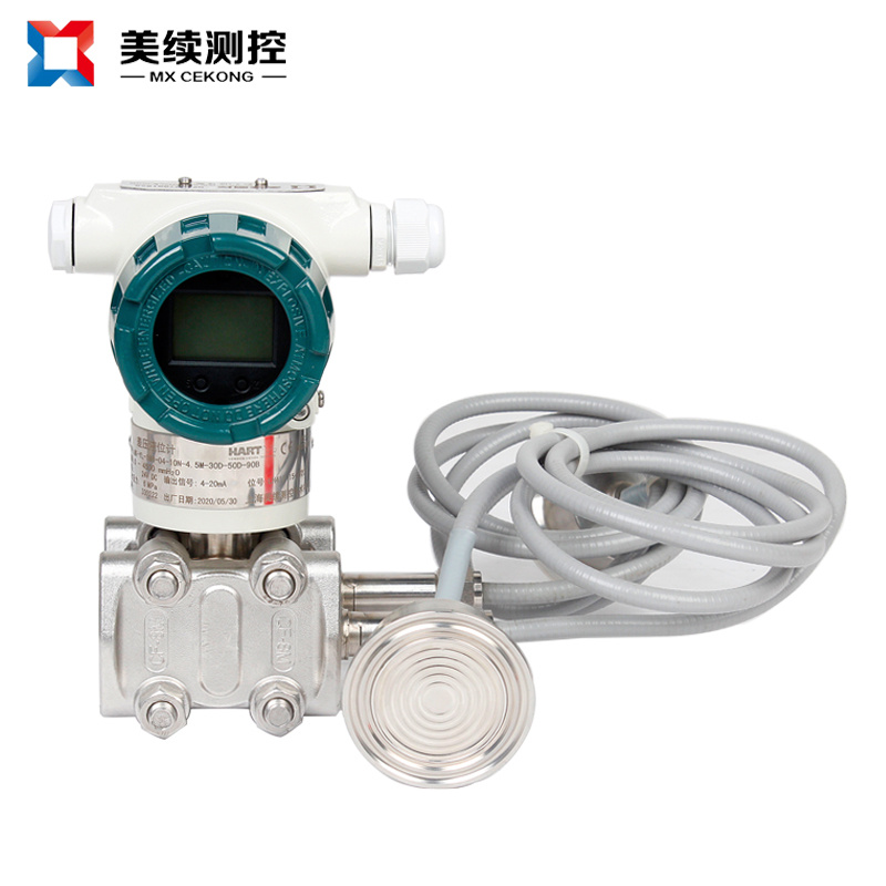 3、當(dāng)測量具有腐蝕性或含有結(jié)晶顆粒,以及粘度大、易凝固等介質(zhì)的測量時,為解決引壓管線腐蝕或堵塞的問題,可以采用法蘭式差壓變送器的法蘭直接與容器上的法蘭連接,作為敏感元件的測量頭(金屬膜盒)經(jīng)毛細管與變送器的測量室相連通,在膜盒、毛細管和測量室所組成的封閉系統(tǒng)內(nèi)充滿硅油,作為傳壓介質(zhì),起到變送器與被測介質(zhì)隔離的作用。