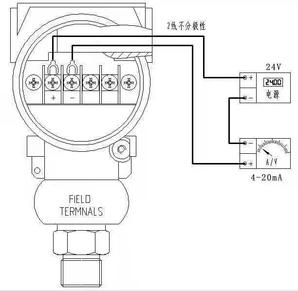 數(shù)字輸出變送器為四線制,與PLC連接時,PLC正接收電流,PLC負接變送器負,PLC條線為四線制電流。