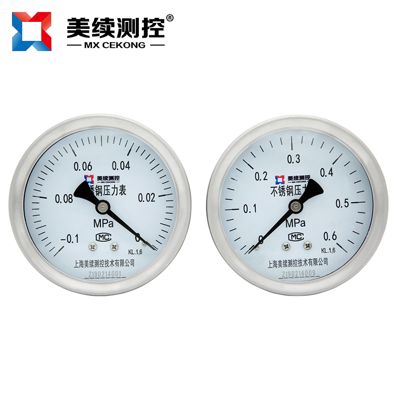 工業(yè)用壓力表MX-YB-02系列不銹鋼耐震壓力表,不銹鋼壓力表廣泛用于石油、化工、化纖、冶金、電站等工業(yè)部中對(duì)液體、氣體的簡(jiǎn)易監(jiān)測(cè)和測(cè)量,以便工人,企業(yè)能夠有效地對(duì)所需要監(jiān)測(cè)的自動(dòng)化設(shè)備實(shí)施有效的控制,其特點(diǎn)就是方便快捷和成本低,對(duì)安裝工人的安裝經(jīng)驗(yàn)要求不高。如果想要進(jìn)行更為高精度額測(cè)量請(qǐng)使用上海美續(xù)測(cè)控MX-YL-系列變送器。如果使用環(huán)境中有震動(dòng)等壞境因素,可以使用本系列的不銹鋼耐震耐壓力表,其在指針界面灌裝抗震油可以有效地減少震動(dòng)對(duì)儀表的損害。