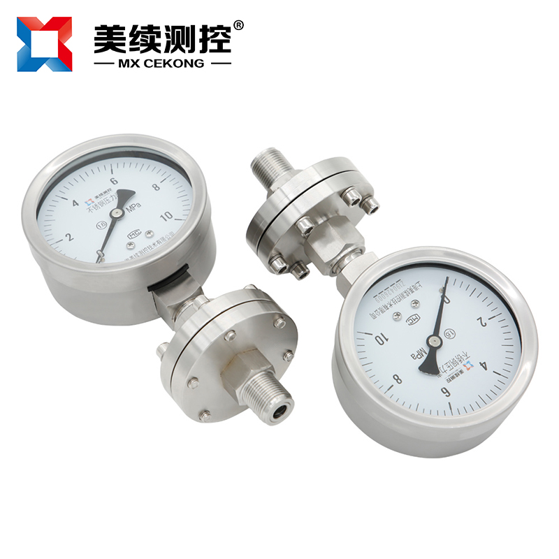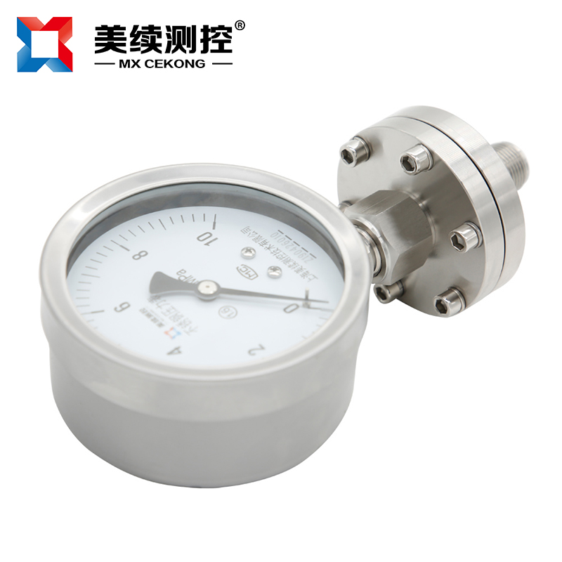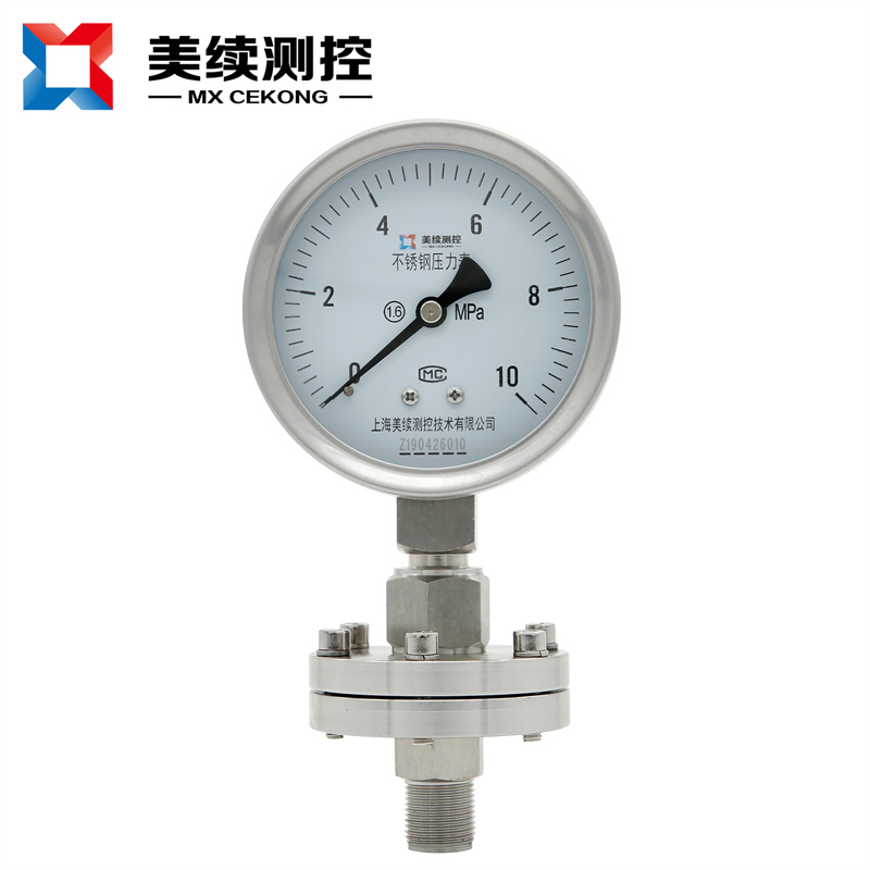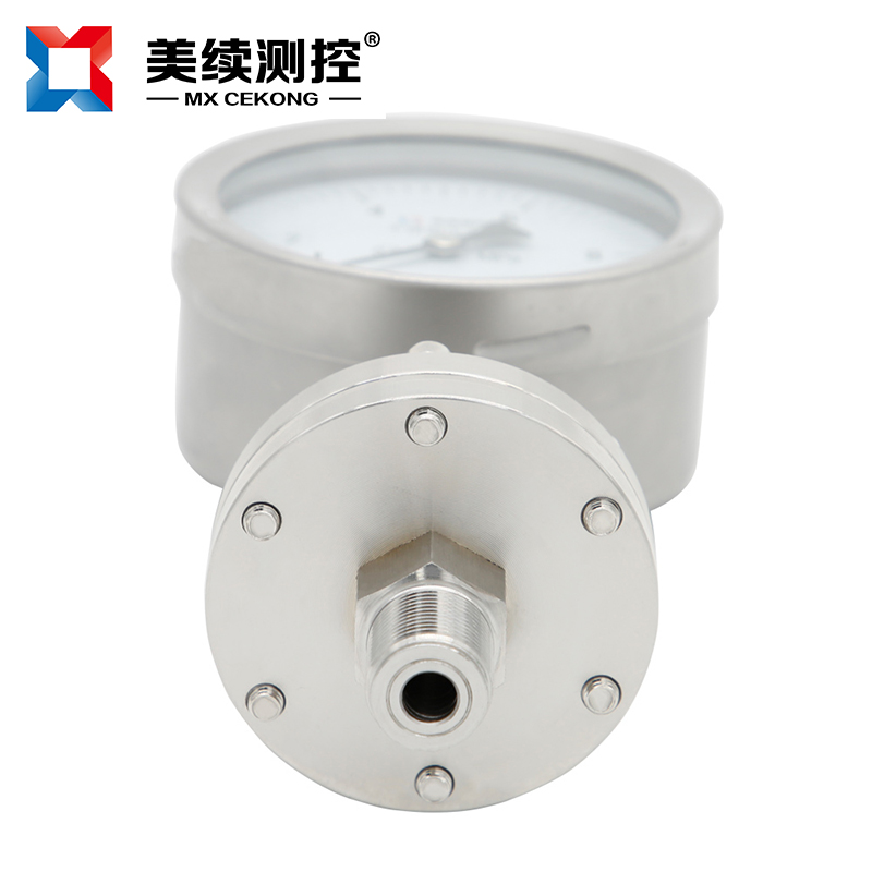 化工封油隔膜壓力表MX-YB-04隔膜式壓力表采用高彈性合金波紋膜片、原裝進(jìn)口機芯,全不銹鋼結(jié)構(gòu)設(shè)計,能適應(yīng)各行各業(yè)的腐蝕性介質(zhì)的壓力測量。表殼任意360度調(diào)整最佳可視角度。