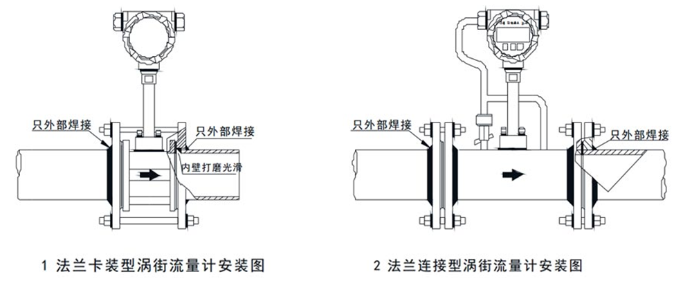 2.流量計可水平、垂直、傾斜安裝。測量液體時,必須保證流體由低處向高處流動;