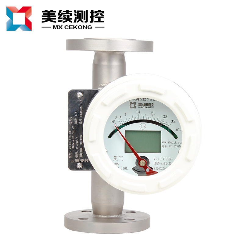 上海美續(xù)金屬轉(zhuǎn)子流量計MX-LL-116-04系列-金屬管浮子流量計主要由兩大部分組成:傳感器和指示 器。傳感器主要由連接法蘭、測量錐管、浮子和上下導(dǎo)向器組成;指示器主要由殼體、磁傳動系統(tǒng)、刻度盤和電遠傳系統(tǒng)組成。在垂直的錐形測量管內(nèi),有一可上下移動的測量部件——浮子,當流體自下而上通過錐形管時,浮子受到流體的作用力,沿錐形管向上移動。當流體的流量增大時,浮子的位移量增大;反之,流體的流量減少時,浮子的位移量變小。也就是說,流體流量的大小,決定了浮子在測量管中的位置,從而決定了浮子和錐形管之間環(huán)形面積的大小。當流體的流量保持在一個恒定的流量 Q 時,浮子也處于一動平衡狀態(tài),停留在錐形管中的一位置 h,此時,浮子和錐形管之間的 環(huán)形面積保持恒定。浮子受到三個力的作用:浮子的重力 G,浮子受到的浮力 F,浮子受到流體的作用力 P,這三個力達到平衡。根據(jù)流體動力學(xué)的柏努力方程、力平衡原理和流體連續(xù)性定律,可以計算出此時通過環(huán)形面積的瞬時流體流量,所以金屬管浮子流量計是用可變面積測量流量的原理。在浮子的內(nèi)部,鑲嵌一高性能永久磁體,當浮子處于平衡位置時,在浮子周圍形成一均勻而穩(wěn)定的磁場。在錐形管的外面,安裝一磁傳感器,這樣就能將測量管內(nèi)浮子的直線位移通過非接觸形式傳遞到指示器中,通過檢測和處理后,最終顯示在指示器刻度盤上或輸出相應(yīng)的標準 4 ~ 20mA 電流信號。