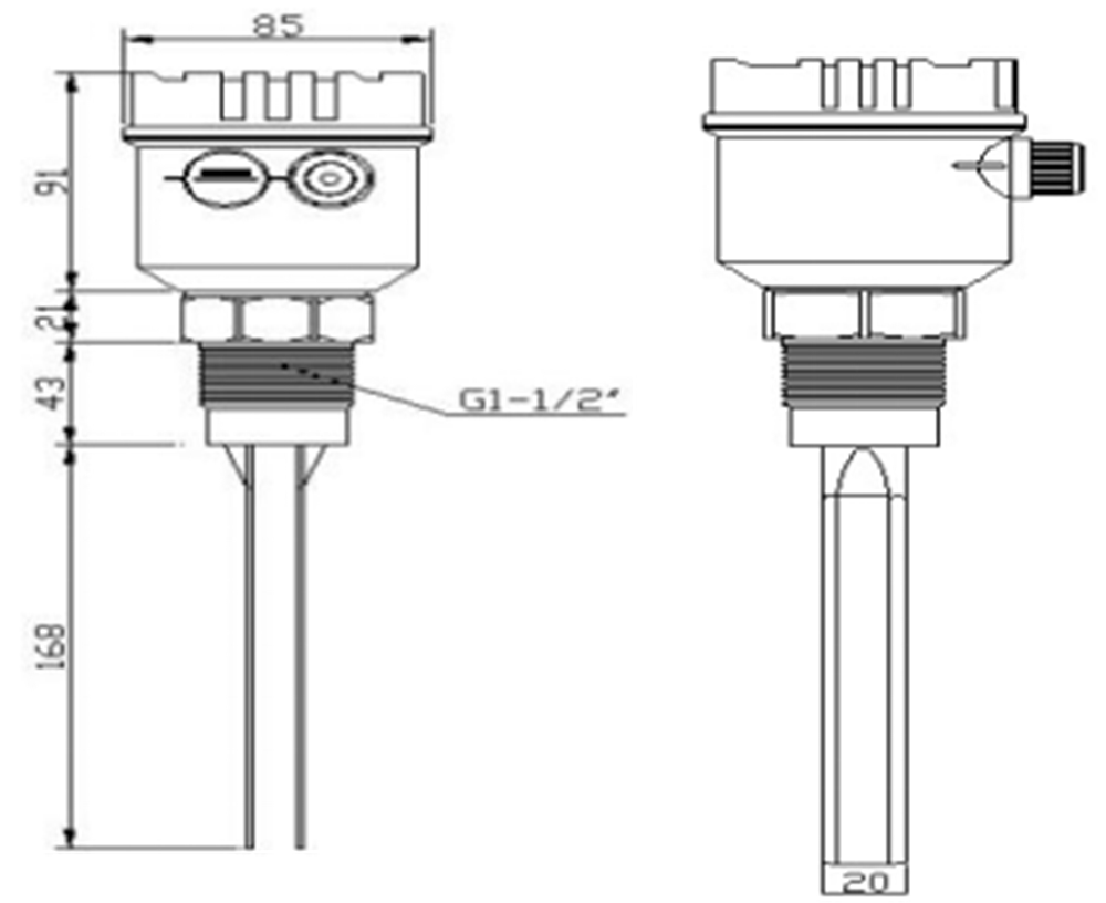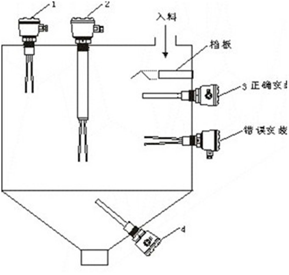 d安裝于卸料斗內(nèi),料位開關(guān)螺牙底端與桶壁之間的最大距離不超過2.4″(60mm),可避免因物料的不當(dāng)堆積而發(fā)生誤報警的情況