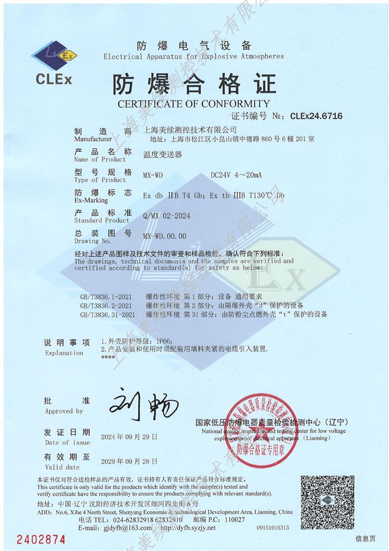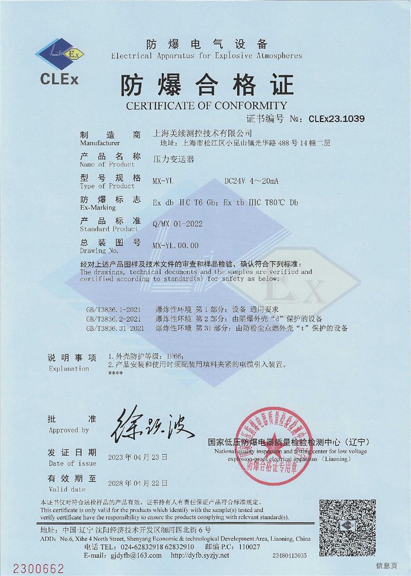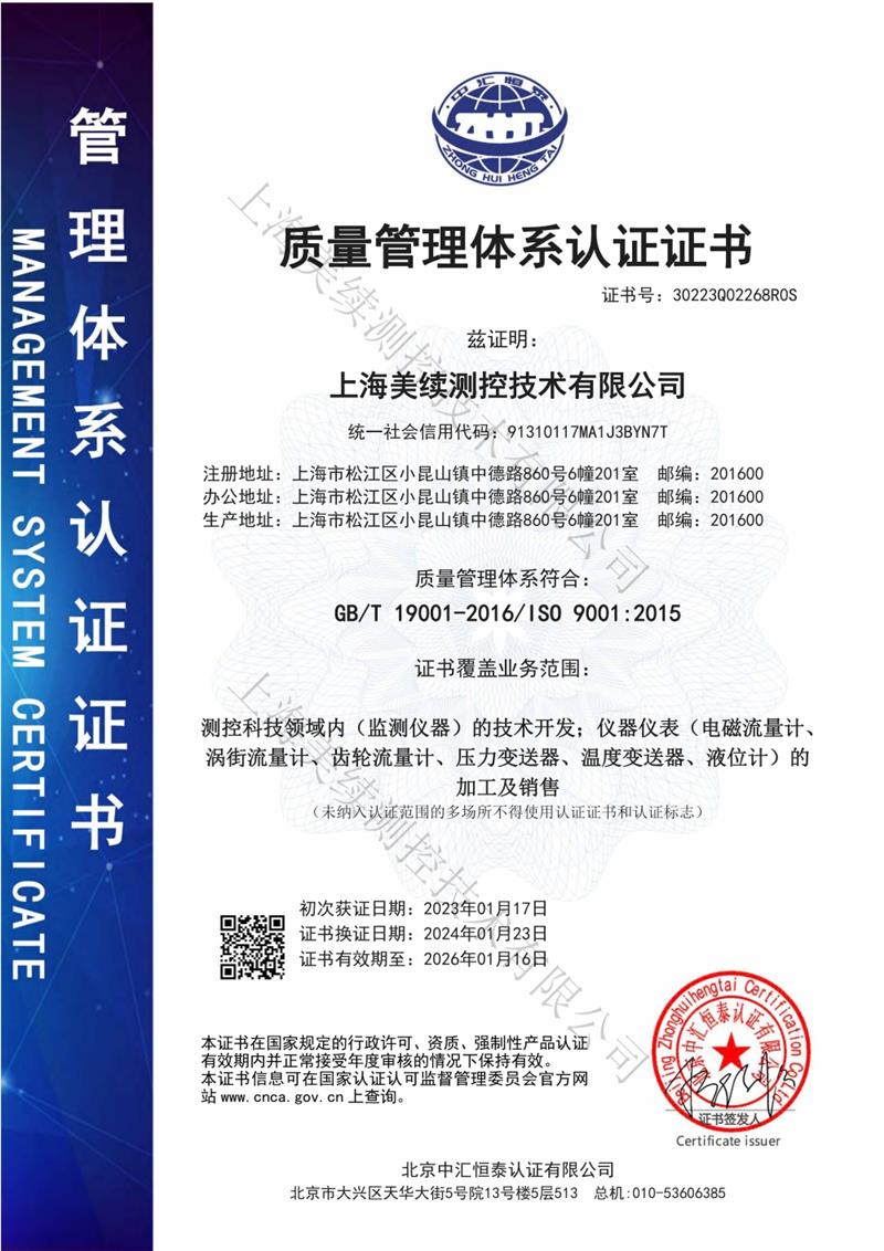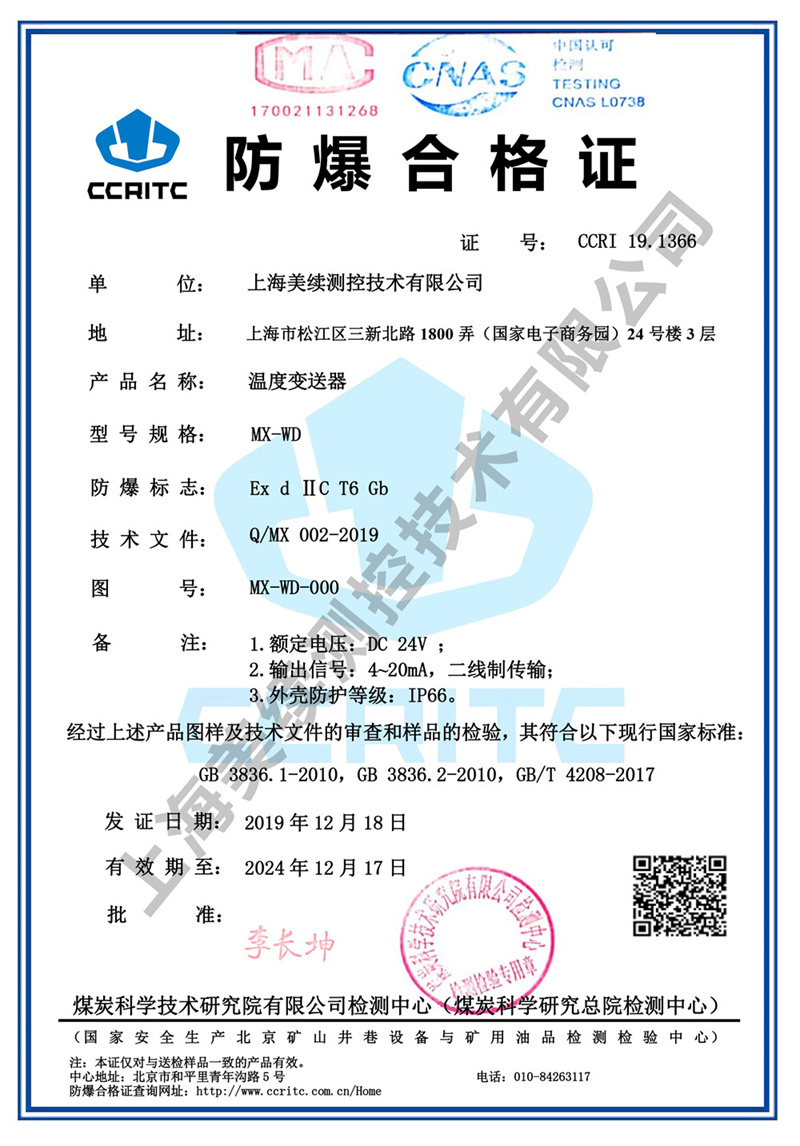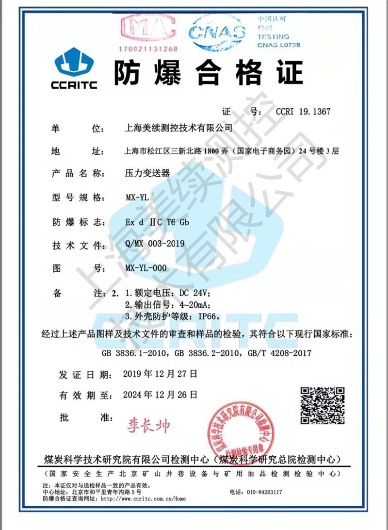 上海美續(xù)測(cè)控用誠(chéng)信為客戶服務(wù),ISO9001認(rèn)證、取得粉塵防爆認(rèn)證,對(duì)質(zhì)量嚴(yán)格把控,獲得的CE歐盟認(rèn)證,為企業(yè)出口歐盟,打開(kāi)國(guó)際市場(chǎng)創(chuàng)造了有力條件。永遠(yuǎn)站在客戶的角度想問(wèn)題是我們的服務(wù)口號(hào),也是我們一直以來(lái)的經(jīng)營(yíng)的理念和宗旨
