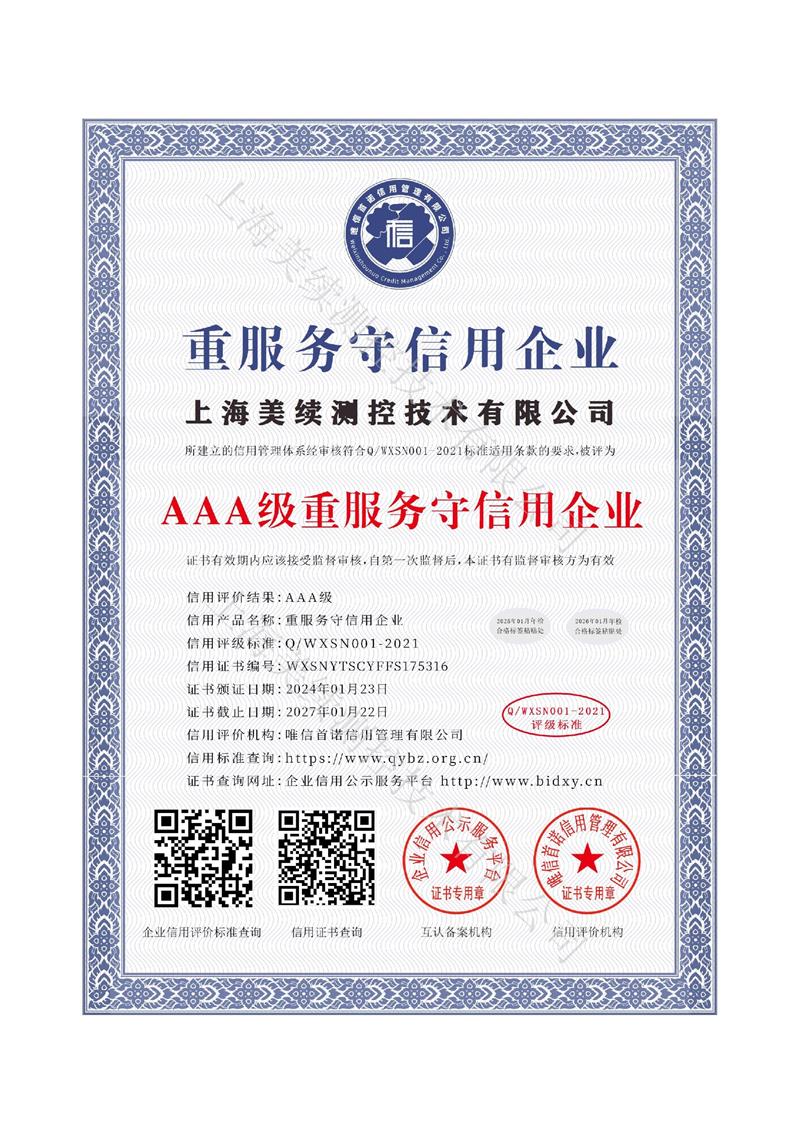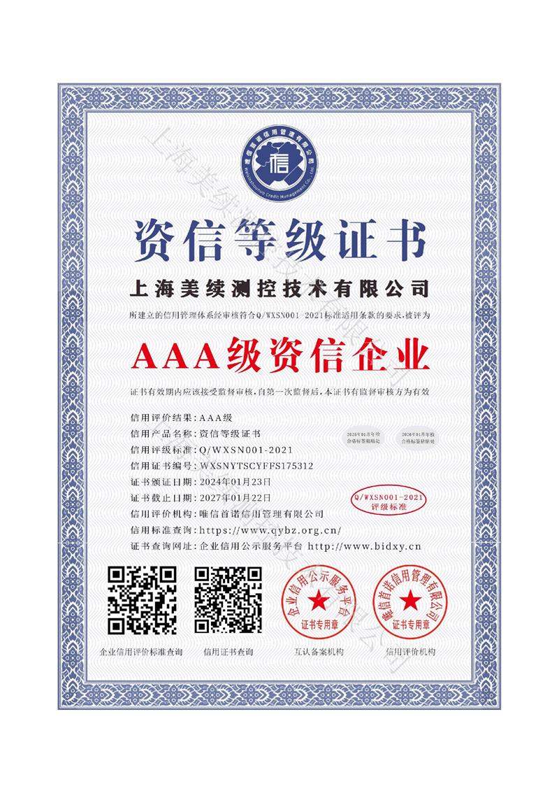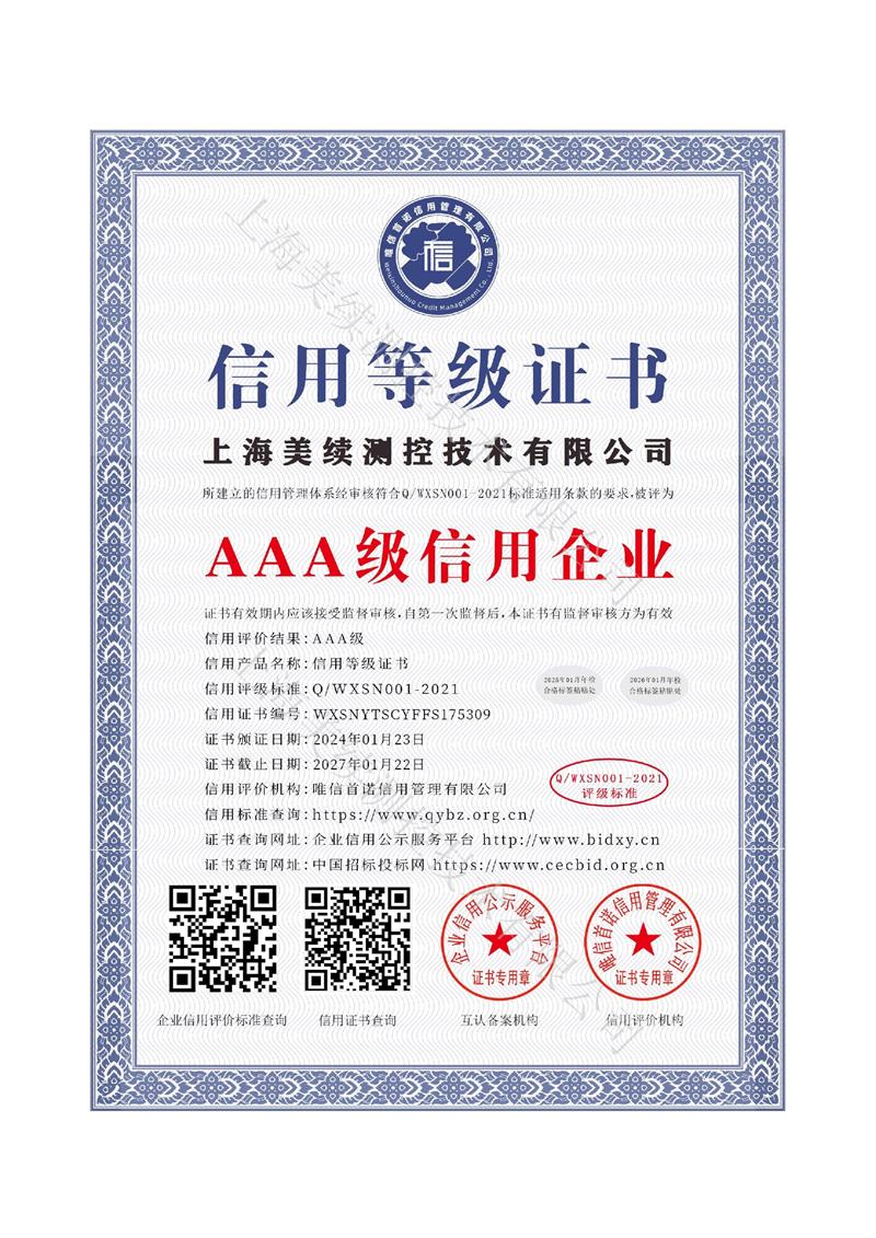 上海美續(xù)測(cè)控用誠(chéng)信為客戶服務(wù),取得多項(xiàng)專利證書(shū),創(chuàng)新是引領(lǐng)企業(yè)發(fā)展、進(jìn)步的第一動(dòng)力。上海美續(xù)測(cè)控形成持續(xù)自主創(chuàng)新機(jī)制,保持技術(shù)和產(chǎn)品的領(lǐng)先和競(jìng)爭(zhēng)優(yōu)勢(shì),提高公司市場(chǎng)影響力和核心競(jìng)爭(zhēng)力